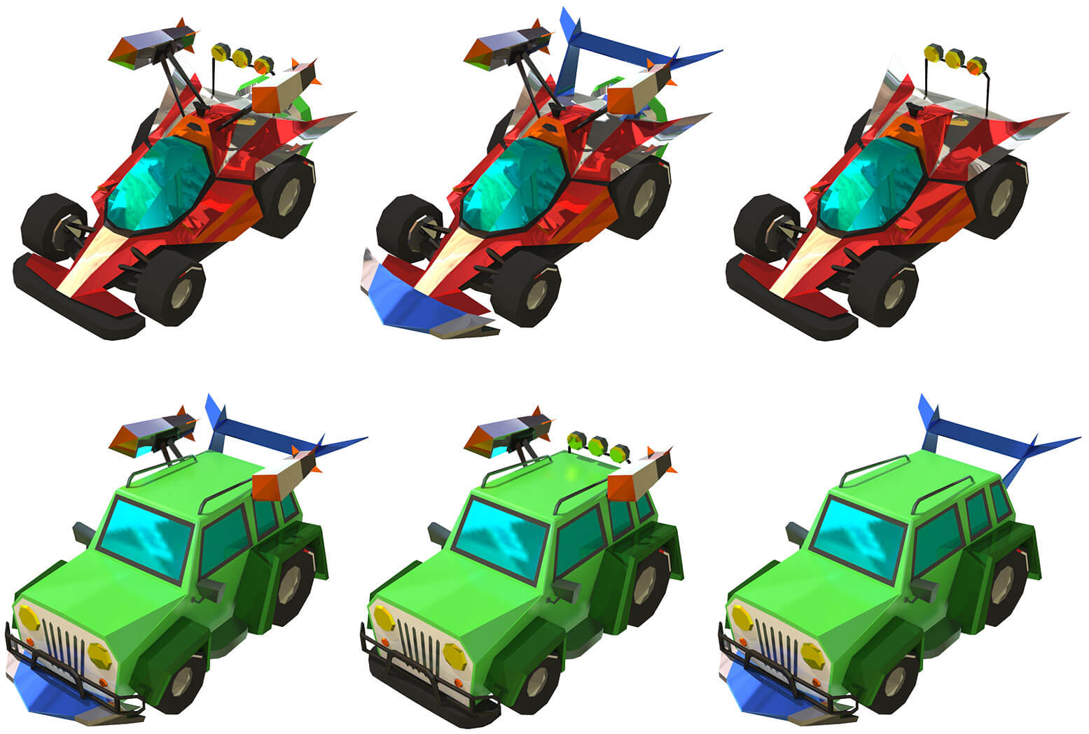 Mix and match different parts and weapons to create your perfect Battle Racer.
